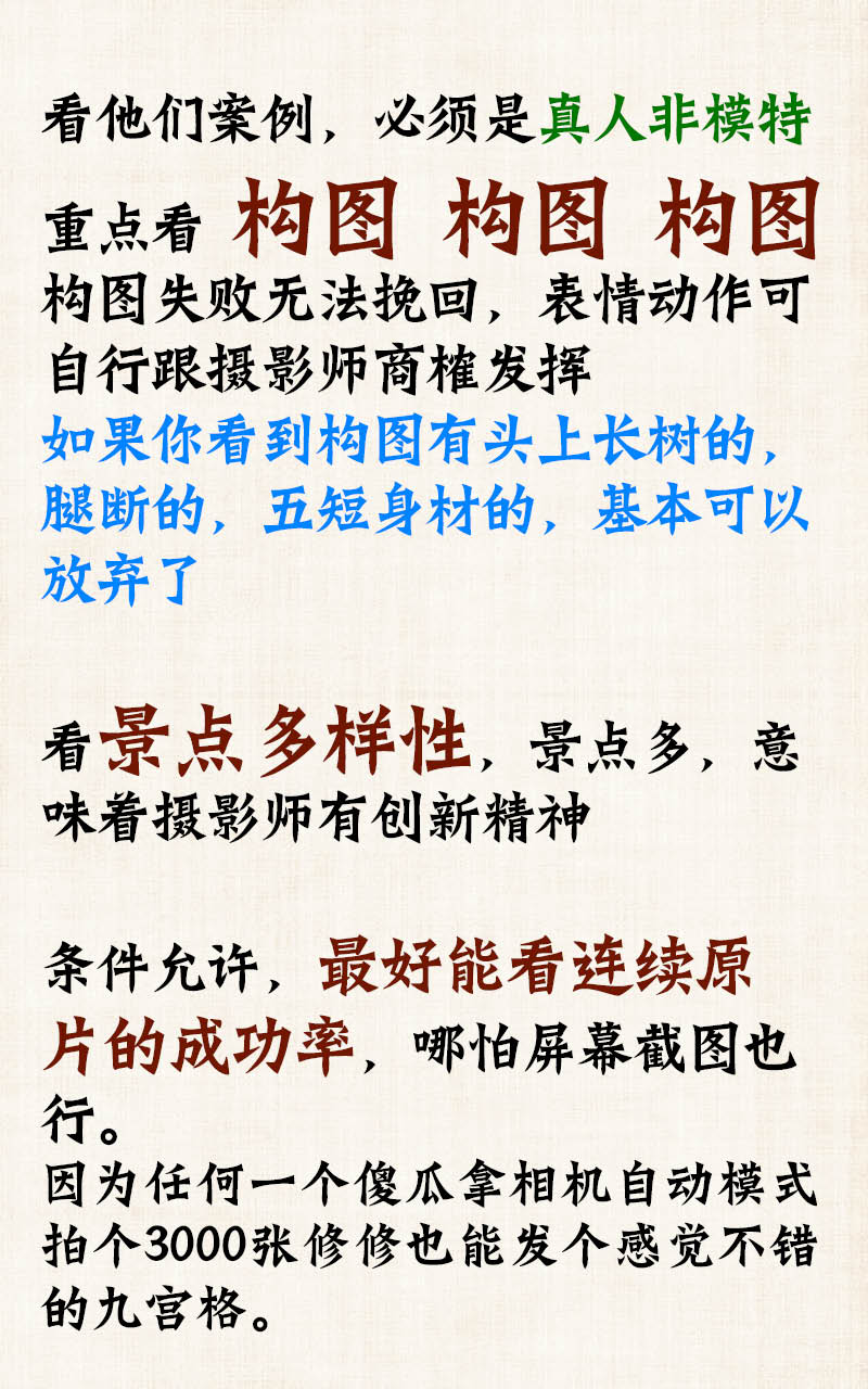 如果你看到构图有头上长树的,腿断的,五短身材的,基本可以放弃了